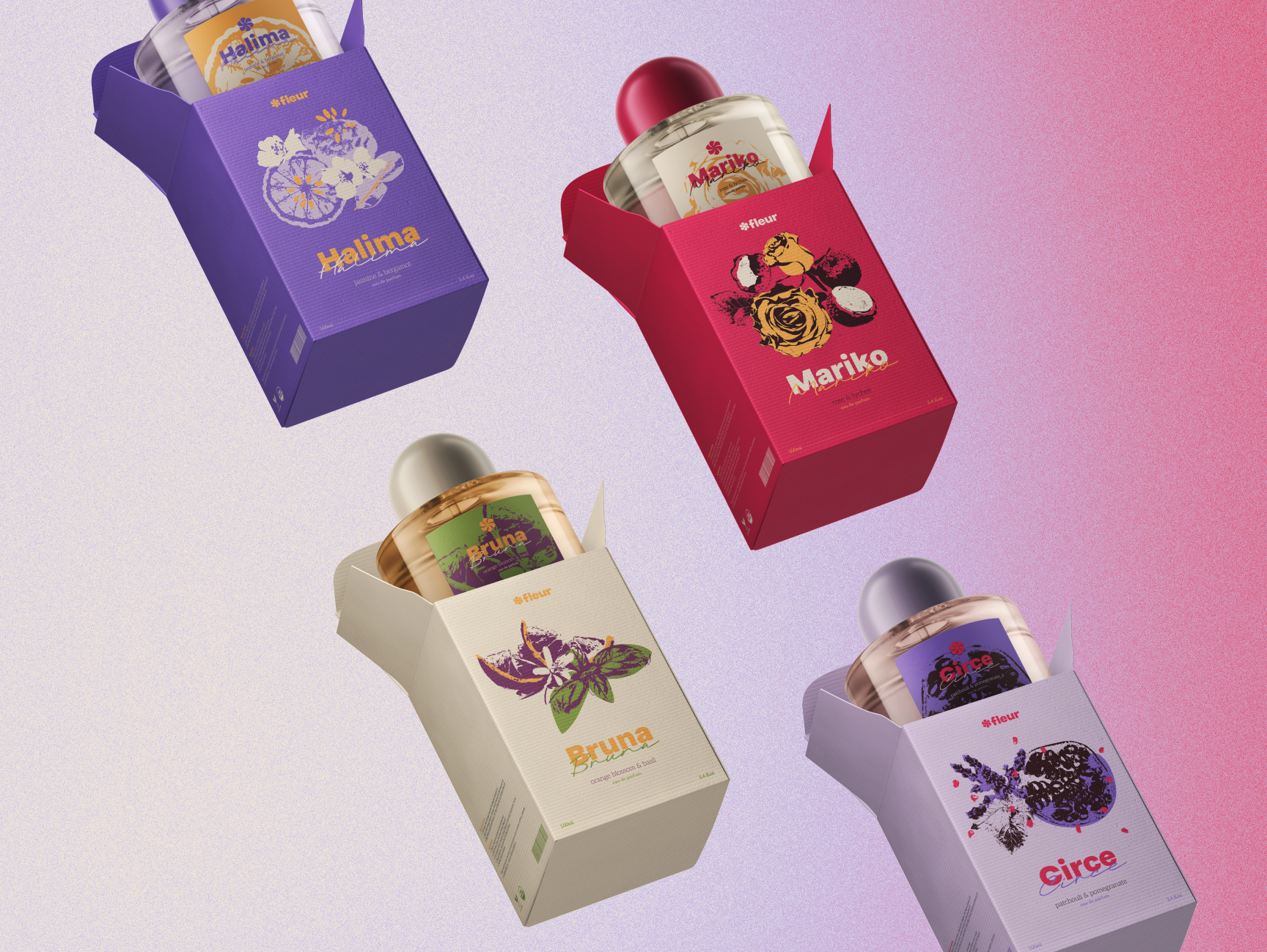Fleur’s packaging is curated to catch the eye of consumers and stand out next to the typical perfume package designs that line the shelves.