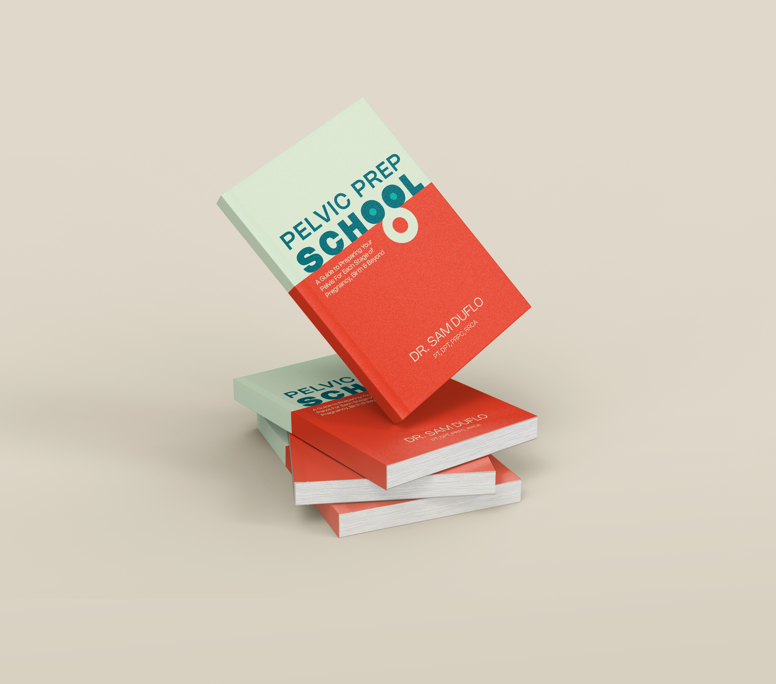Pelvic Prep School is a book written by Dr. Sam DuFlo about preparing your pelvic floor for pregnancy, birth, and beyond. I was commissioned to design the cover.